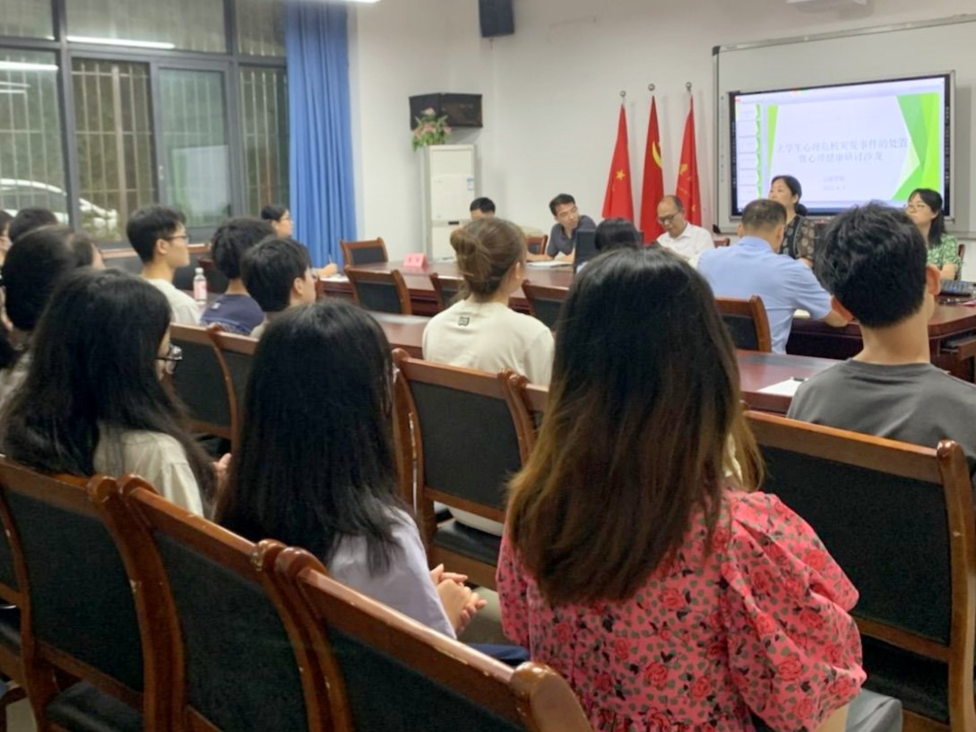 心灵健康伴我行,花开香满溢校园。正值学校七秩芳华之际,为进一步增强大学生的综合心理素质,开展心理健康教育,2022年6月9日上午10点30分,9728太阳集团于田家炳书院317会议室开展了大学生心理危机突发事件的处置暨心理健康研讨会。学院全体领导高度重视心理健康建设,分党委书记王建明、院长王兰、分党委副书记余新、副院长庞楷、王韧等领导出席活动,9728太阳集团全体辅导员、部分行政老师和全体心理委员参加会议。
