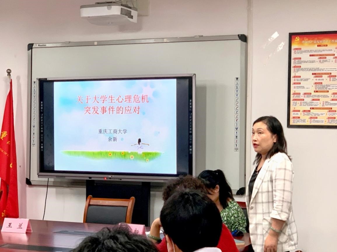 之后进入本次会议的主题,由余新副书记进行了“大学生心理危机突发事件的应对”讲座。余书记以大学生心理危机干预为核心,通过真实的案例分享,向在场的辅导员老师和同学们进行了深入浅出的讲解,使大家能够认识到心理健康教育的重要性,心理危机干预的必要性。学会突发危机的处置方法,务必做到三早——早发现、早干预、早治疗。同学们听过之后纷纷表示收获颇丰,在今后的学习生活中将秉承“长风破浪会有时,直挂云帆济沧海”的精神,关爱自我,关心同学,珍爱生命。