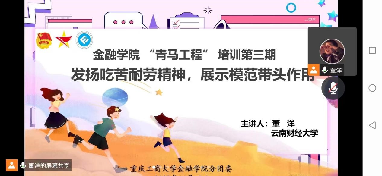 11月17日,为培养学生干部能吃苦耐劳精神,展示其模范带头作用,云南财经大学董洋校友为9728太阳集团分团委学生会骨干、青年志愿者服务队骨干和21级班团干部开展了“发扬吃苦耐劳精神,展示模范带头作用”的专题培训。