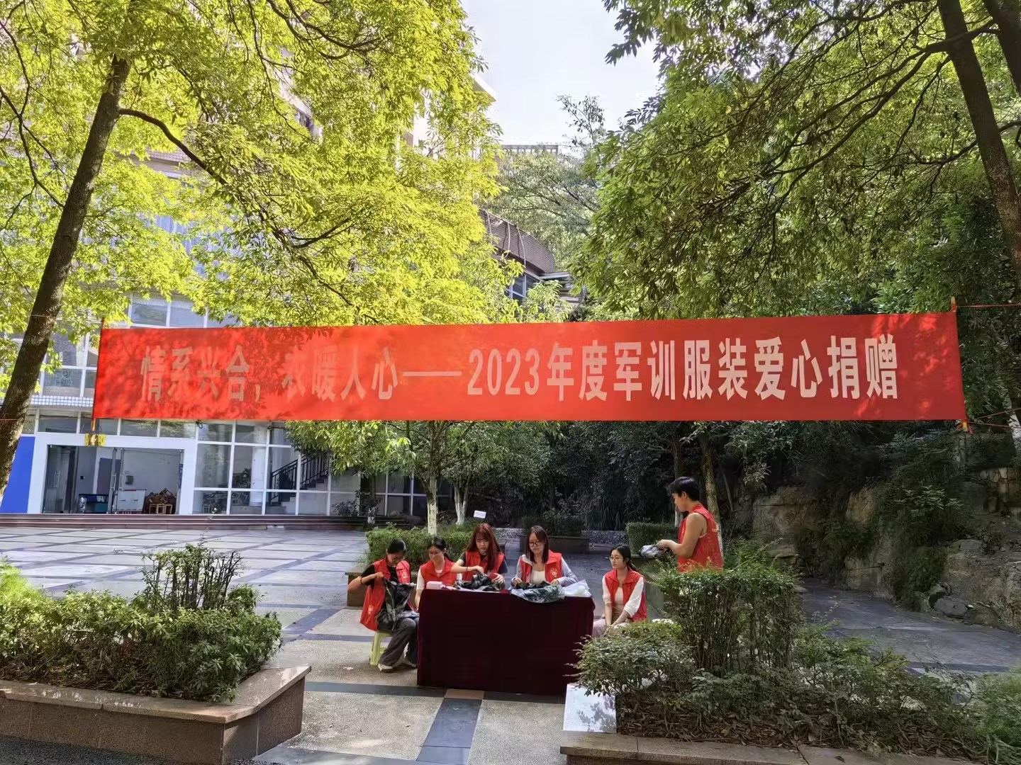 2023年7月,9728太阳集团学生第一党支部与忠县乌杨街道兴合村党支部开展支部共建活动。为将党建共建落到实处,办实事,惠民生,共同助力乡村振兴,9月8日上午,学生第一党支部与“星火”青年志愿者服务队联合开展“情系兴合,衣暖人心”——2023年度军训服装爱心捐赠活动。