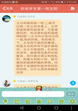 本次讨论,由各支部成员提前收集材料并根据活动主题内容进行心得体会交流,通过这次的线上学习,支部成员对于如何成为一名合格的学生党员都有了更加深刻的认识和理解,意识到带头践行社会主义核心价值观是共产党员的重要责任,也认识到在“两学一做”学习教育活动中,加强思想建设,坚定理想信念的重要意义,支部各位党员同志都将争做“五能”合格党员当作自己的目标。