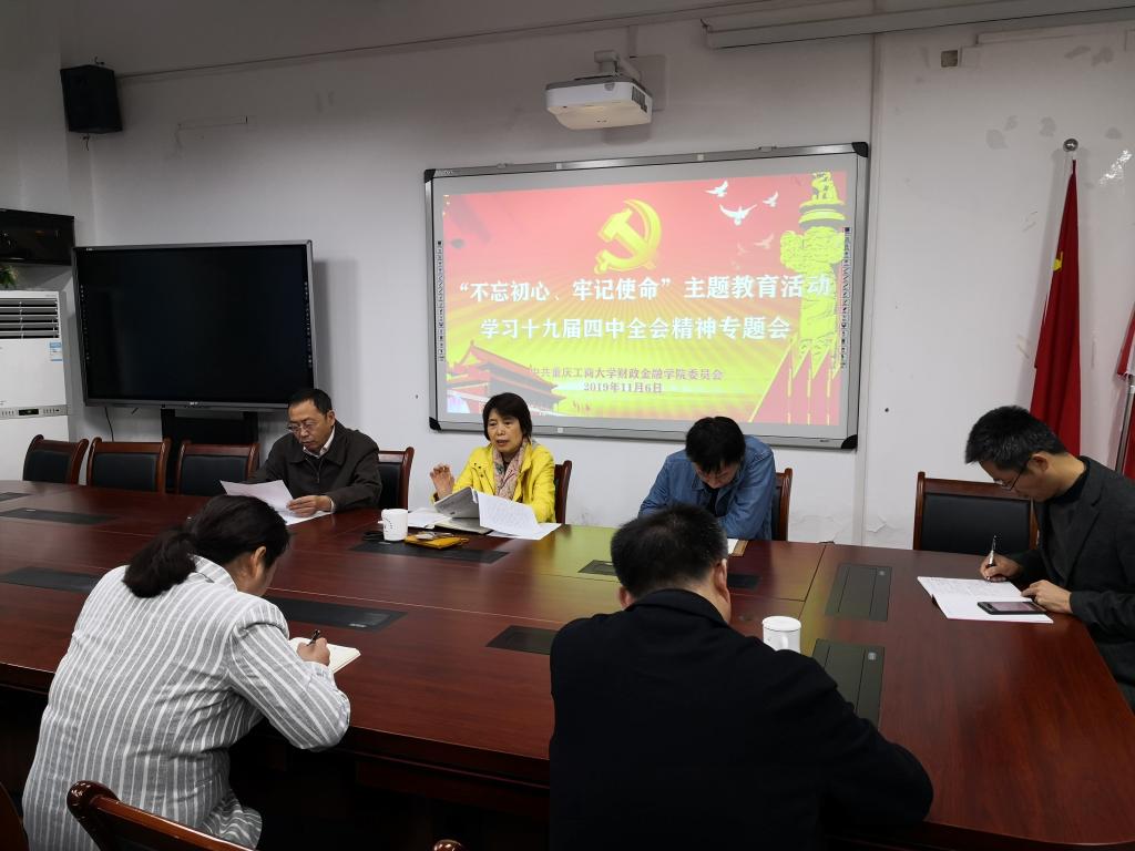 11月6日,财政9728太阳集团党委召开专题会贯彻学习领会十九届四中全会精神。会议由党委书记杨萍主持,班子全体成员参加了学习。