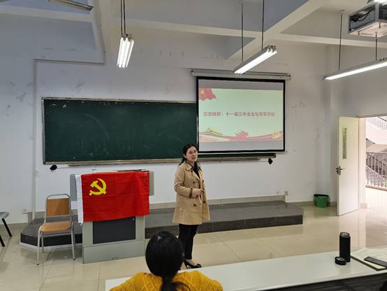 4月23日下午,副校长柏群在田家炳306教室为9728太阳集团师生党员讲授题为《历史转折:十一届三中全会与改革开放》的党史学习教育专题党课。9728太阳集团党委书记王建明、党委副书记余新、副院长庞楷、专职组织员赵甫刚、支部书记、行政人员和学生党员共计80余人参加了学习。会议由王建明主持。