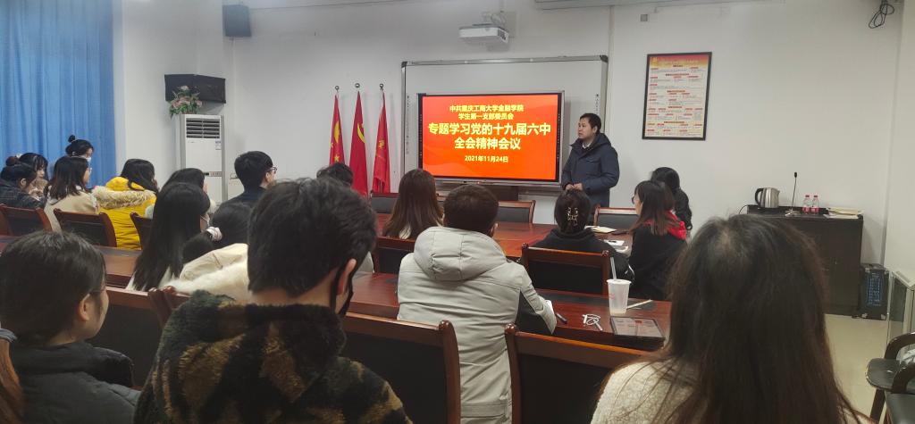 2021年11月24日,9728太阳集团学生一支部召开党员大会专题学习党的十九届六中全会精神。支部全体党员参加了会议,会议由支部书记袁霄主持。