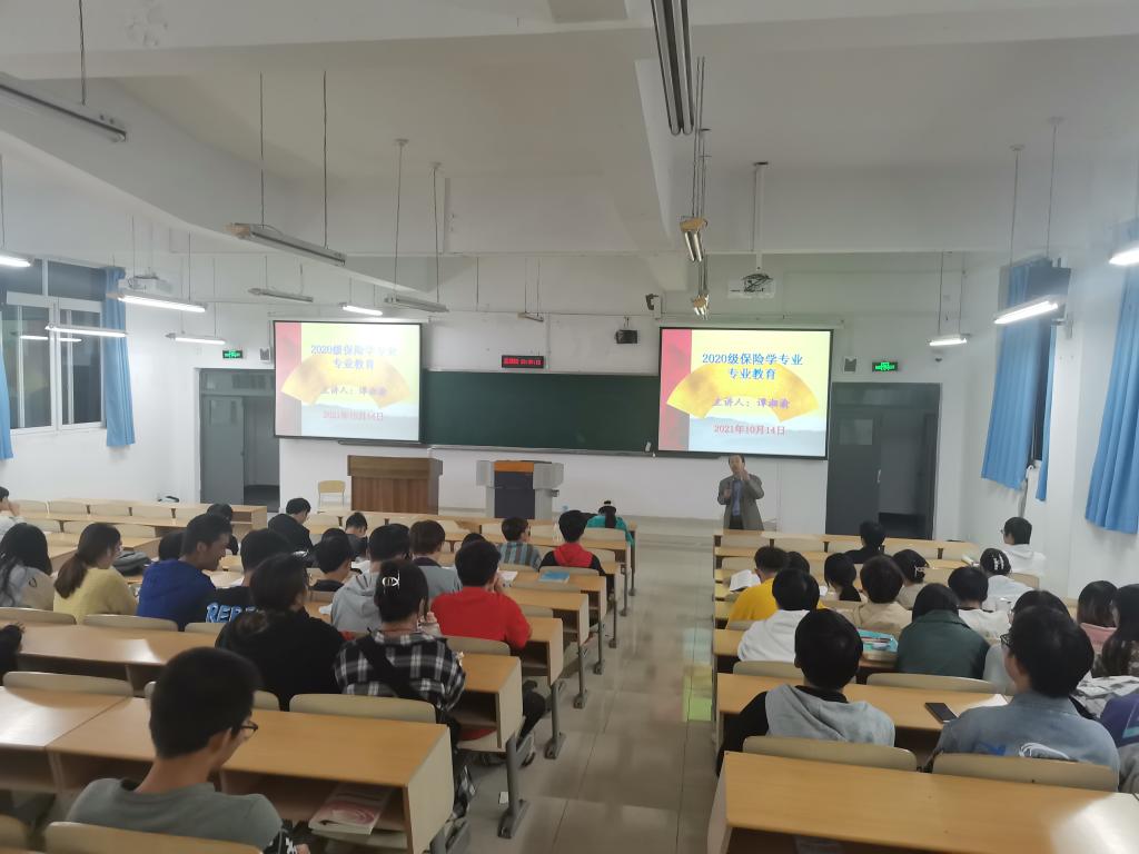 为了进一步适应金融学大类招生和二年级分流培养的新形势,增强学生对专业的认同感,9728太阳集团在各专业有序开展专业指导工作。2021年10月14日,保险学系主任谭湘渝教授为2020级保险学专业本科生进行了专业教育。