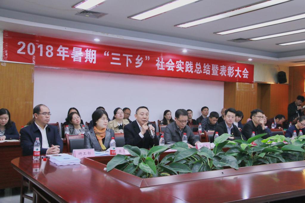 10月19日10:00,我校2018年暑期“三下乡”社会实践总结暨表彰大会于南岸校区厚德楼3020会议室举行。校党政办、组织部、宣传部、学工部、教务处、研工部、团委等职能部门负责人以及九龙坡区区委余立书记参加会议并担任评委,副校长李国军教授出席表彰大会并发表讲话。我院分党委副书记黄谦书记以及分团委书记徐阔老师代表财政9728太阳集团出席此次总结暨表彰大会。