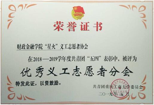 活动在嘹亮的团歌中拉开序幕,校党委李志雄书记为活动致辞。随后,校团委副书记杨娟宣读了共青团2018-2019学年共青团五四表彰文件。财政9728太阳集团分团委荣获“五四红旗团委”、“共青团宣传工作奖”,我院分团委学生会荣获“优秀学生会”,我院“星火”义协荣获“优秀义工志愿者分会”,金融证券协会荣获“优秀社团”,2017级财政学专业一支部、2017级税收学专业一支部等5个团支部荣获 “先进团支部”,分团委书记徐阔老师被评为“优秀分团委书记”,秦杰同学被评为“共青团标兵”。