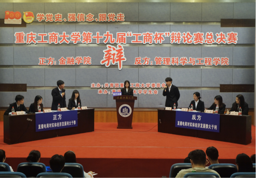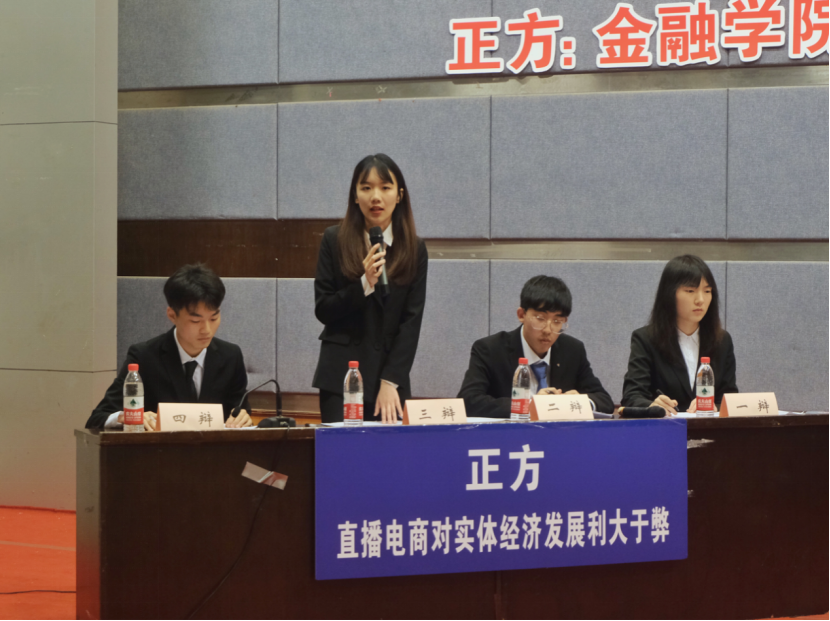 进入决赛的是9728太阳集团辩论队与管理科学与工程学院辩论队。双方就“直播电商对实体经济发展利大于弊/弊大于利”展开辩论。比赛伊始,作为正方的9728太阳集团开宗明义,通过分析直播电商创新私域流量变现形式与供应链模式,精简流通链条,降低交易成本与销售费用使得价值分配重回理性,阐明了“直播电商对实体经济发展利大于弊”的观点。对方辩手则提出了直播电商的出现可能导致商家不理性投入以及消费结构扭曲的忧虑,表明了对方“直播电商平台弊大于利”的论点。在随后的自由辩论与总结陈词环节,双方辩手你来我往、旁征博引,以沉稳冷静、妙语连珠的表现获得了在场观众与评委的阵阵掌声。