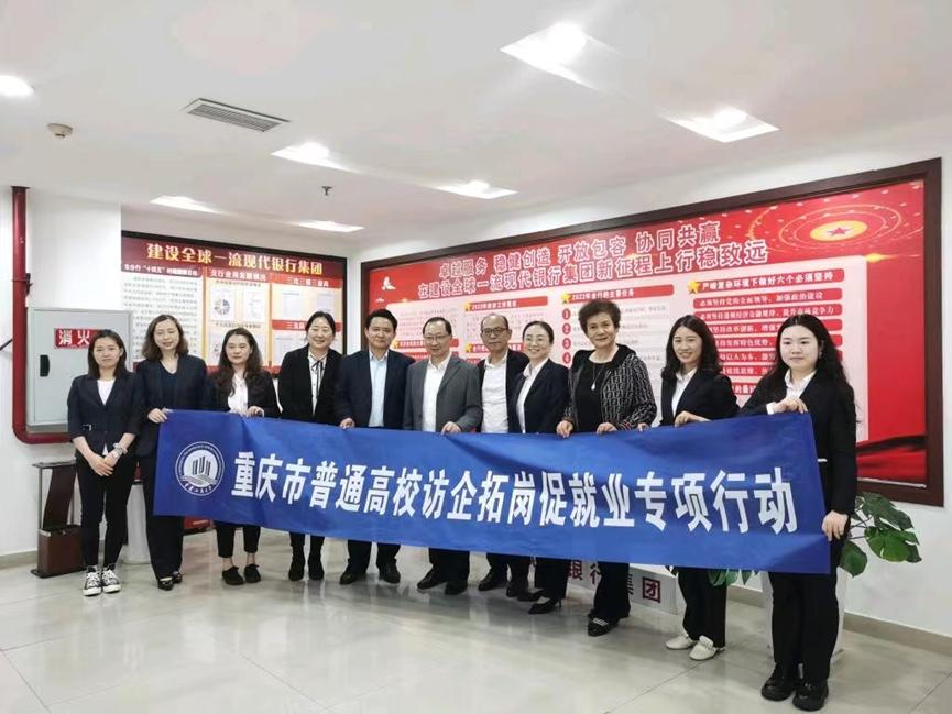 4月14日——4月15日,在太阳集团官网tyc9728党委常委、副校长张波,9728太阳集团党委书记、副院长王建明以及党委副书记、院长王兰的带领下,学生二支部书记乔明月等同志一行分别走访了重庆银行巴南支行、中国银行南岸支行、泰康人寿保险有限责任公司重庆分公司、安信证券重庆分公司四家企业,就人才培养需求、党建促进校企合作等方面进行交流与调研。