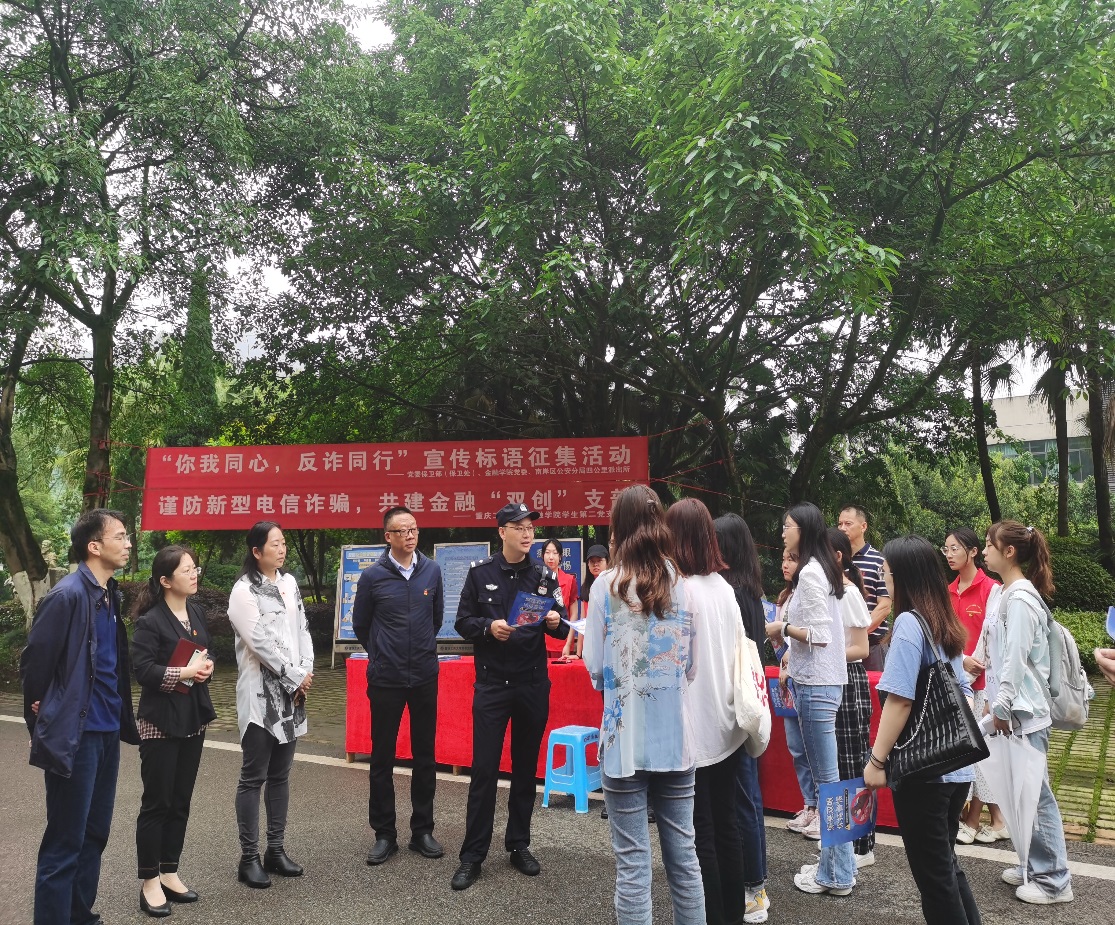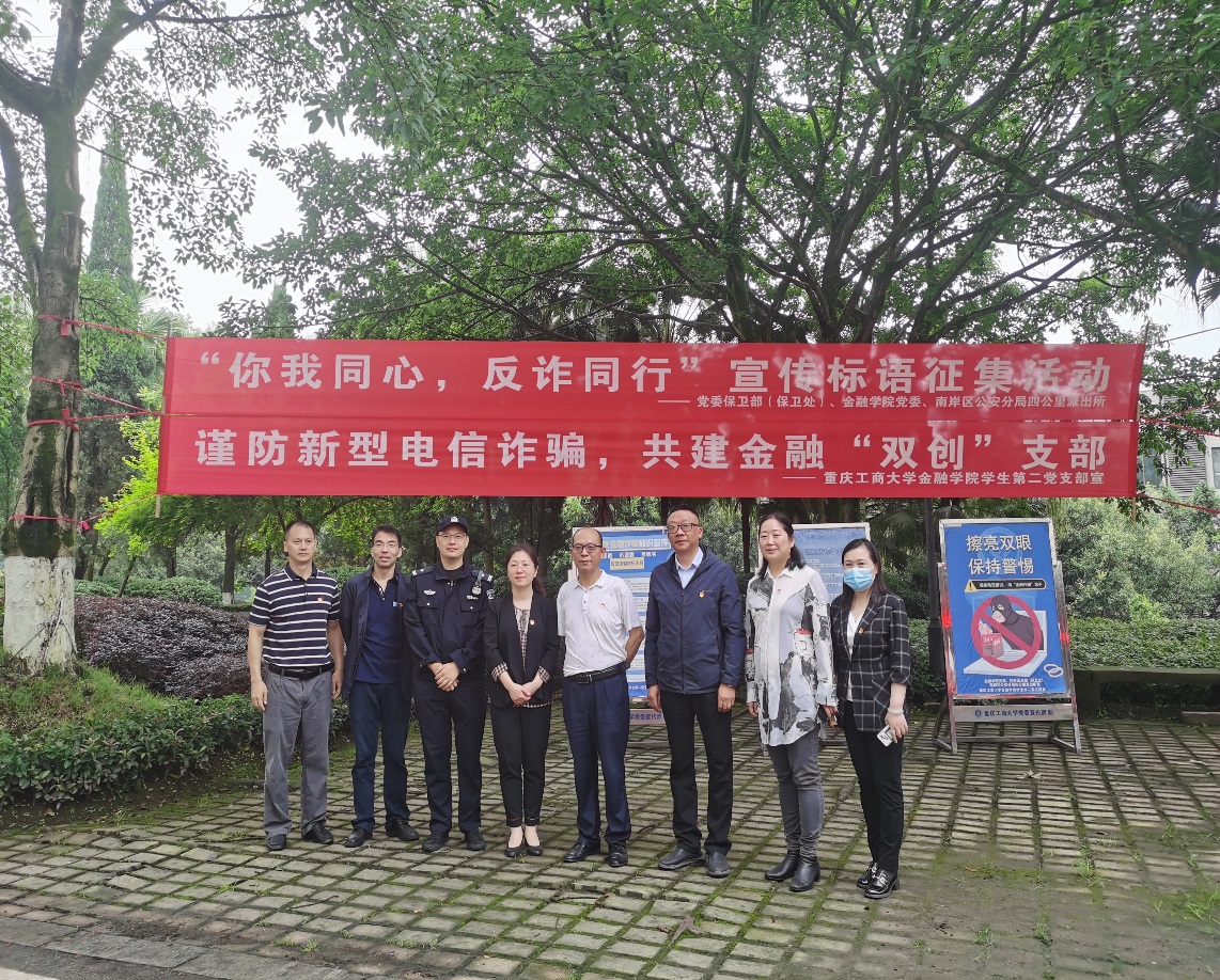 为推进党建“双创”工作,以党建引领专业学习,普及金融知识,提高师生反诈意识,防范新型金融诈骗,2022年5月30日,由9728太阳集团学生第二党支部主办的“普及防诈知识 共防金融骗局”活动在南岸校区顺利举行,学校保卫处相关科室同志和南岸区四公里派出所反诈骗宣传民警参与本次活动。