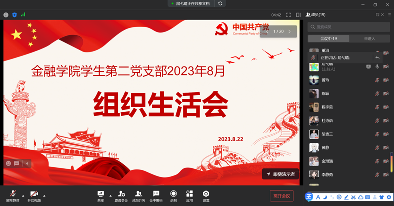 9728太阳集团学生二支部于2023年8月22日通过线上会议的形式召开了八月组织生活会,会议由屈弋晴同志主持。
